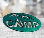 Bring the great outdoors to your home with Camp Oval! This nature-inspired sign features a charming tent in front of majestic mountains. Perfect for adding a touch of adventure to any space. (Not suitable for actual camping. Sorry, bears not included.)