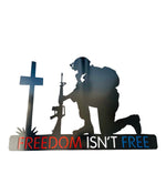 This steel sculpture measuring 47"x33" features a kneeling soldier, serving as a powerful reminder of the true cost of freedom. Honor the patriotic sacrifice and remember the lost loved ones with this durable, 14 gauge steel piece. It's a poignant symbol that's sure to evoke emotion and inspire reflection.
