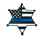 This 6 pt Sheriff Star w/Thin Blue Line Backer is perfect for law enforcement officers and those who support them. Show your patriotism and support with the iconic sheriff star and thin blue line design. Made for durability and style, this product is a must-have for any law enforcement professional.